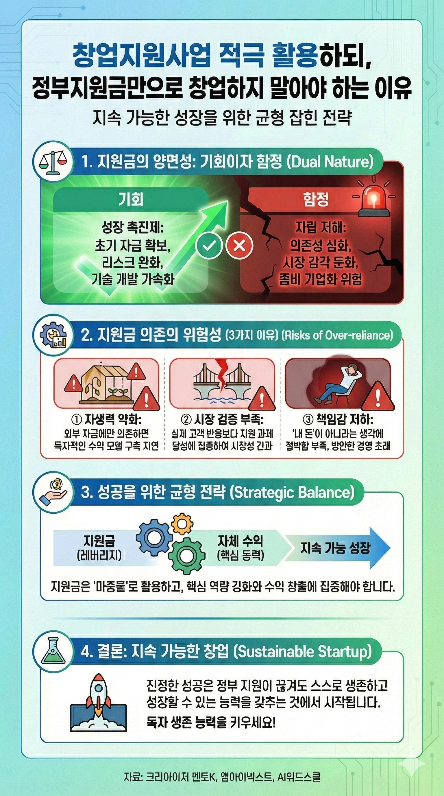 #2026창업지원사업 #지속가능한창업 #지원금활용전략 #정부지원사업 #예비창업자 #스타트업전략 #자립형창업 #비즈니스모델 #창업멘토링 #창업실전전략 #초기자금 #스타트업교육 #멘토K특강 #지원사업의양면성 #좀비기업위험 #자생력강화 #창업성공전략 #IR전략 #정부지원금활용법
