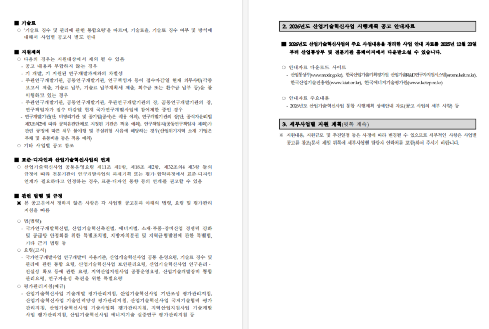 2025년 12월 23일, 산업통상자원부는 「2026년도 산업기술혁신사업 통합 시행계획」을 공식 공고했습니다.