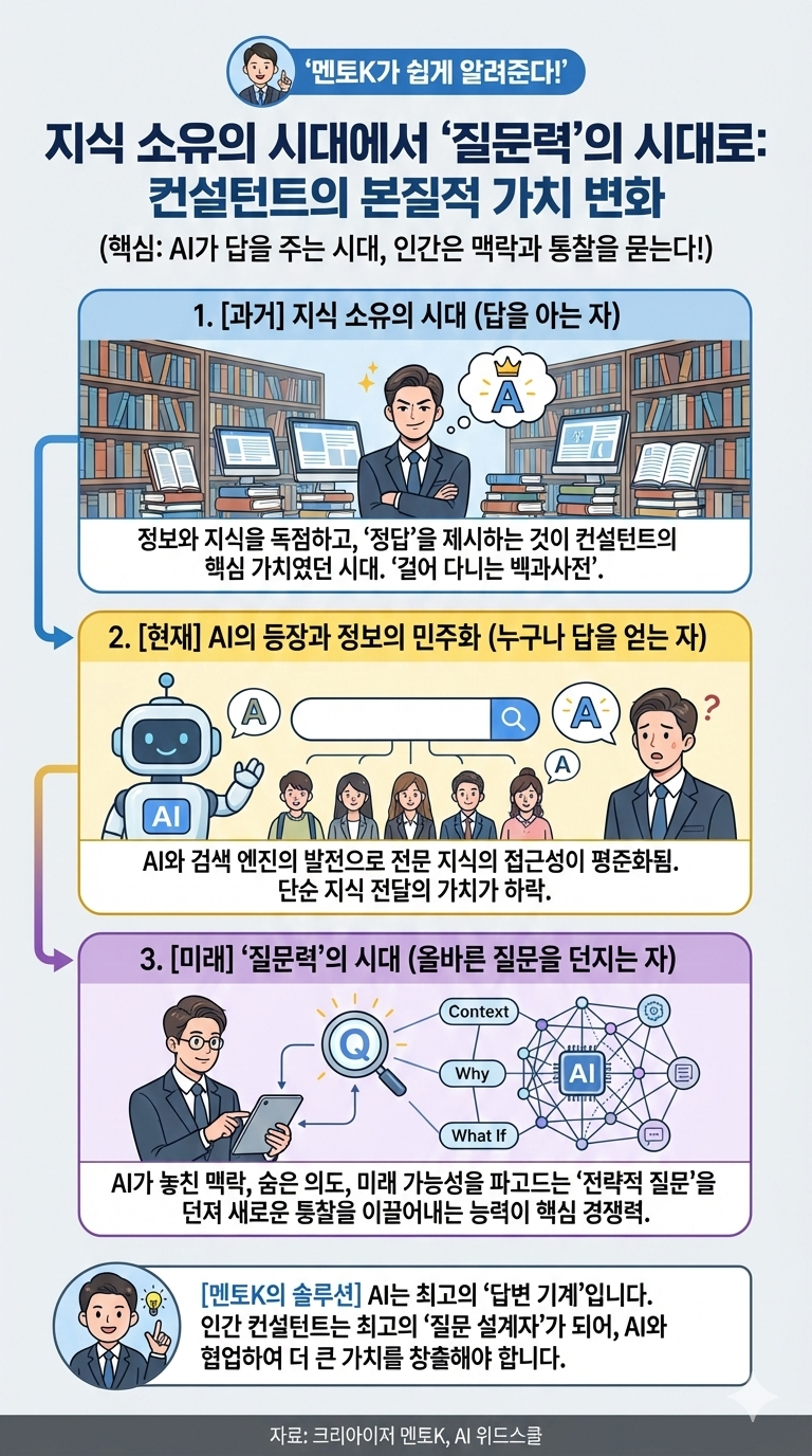 AI 시대에 컨설턴트, 기획자, 전문가들이 반드시 알아야 할 ‘질문 설계력’의 본질과 핵심 전략을 지금 확인하세요.