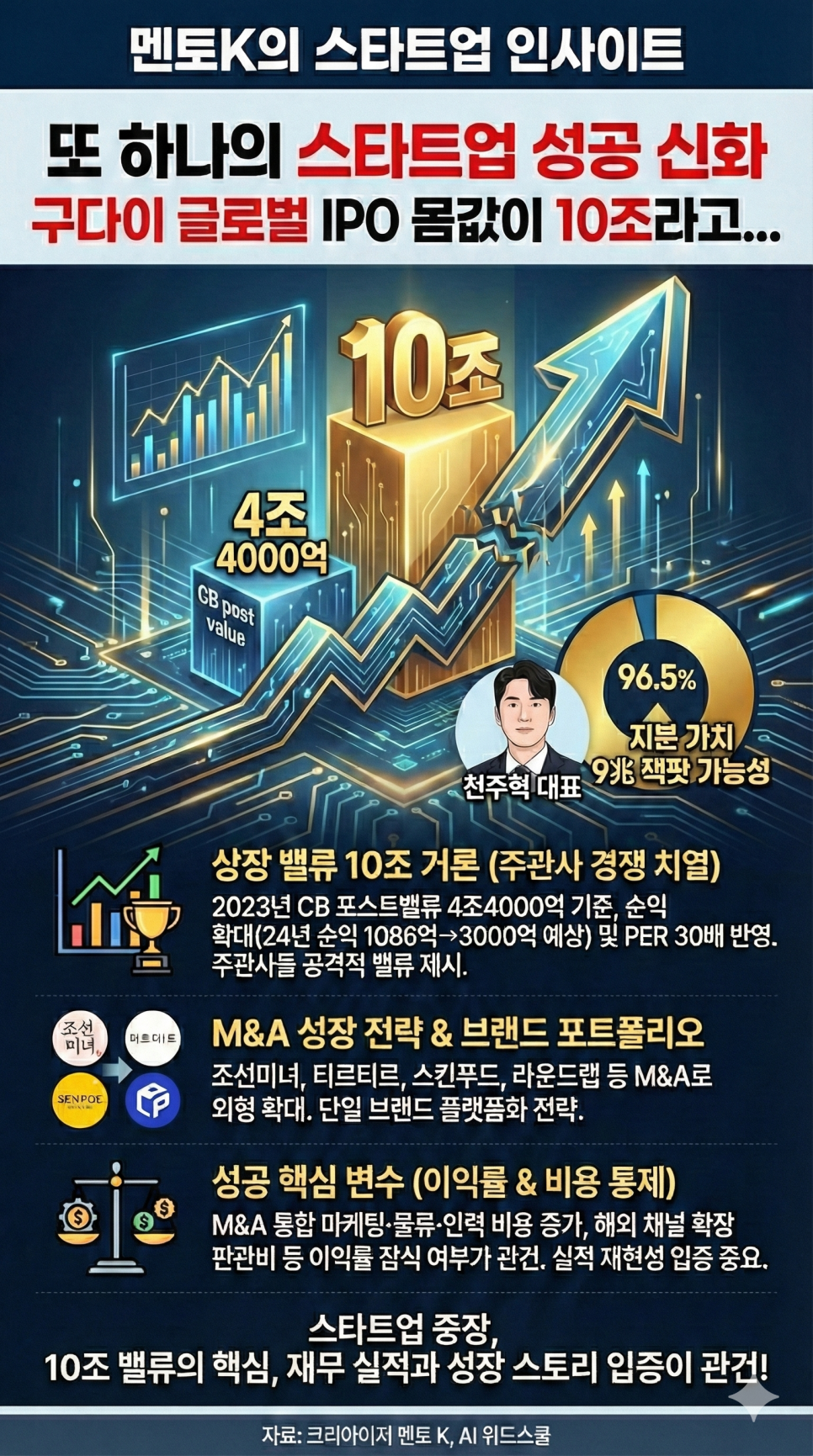 #김용한컬럼 #김용한박사 #김용한강사 #크리아이저멘토K #스타트업전략 #구다이글로벌IPO #스타트업성공사례 #10조밸류 #IPO전략 #M&A성장전략 #브랜드플랫폼 #수익모델설계 #스타트업인사이트 #재무전략 #IR스토리 #유니콘성장 #시장성장률 #실적기반스토리텔링 #뷰티테크스타트업