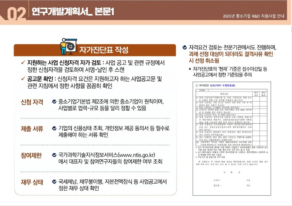 - 신청 기업 정보: 기업의 기본 정보, 주요 사업 영역 및 연구개발 역량