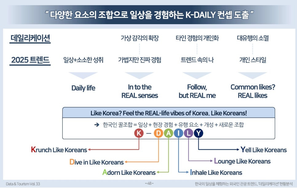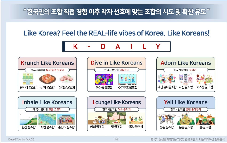 관광 기업들은 이러한 흐름을 적극적으로 활용하여 체험형 관광 상품을 개발하고, 한국의 문화와 일상을 더욱 깊이 있게 전달할 수 있는 기회를 만들어야 한다.
