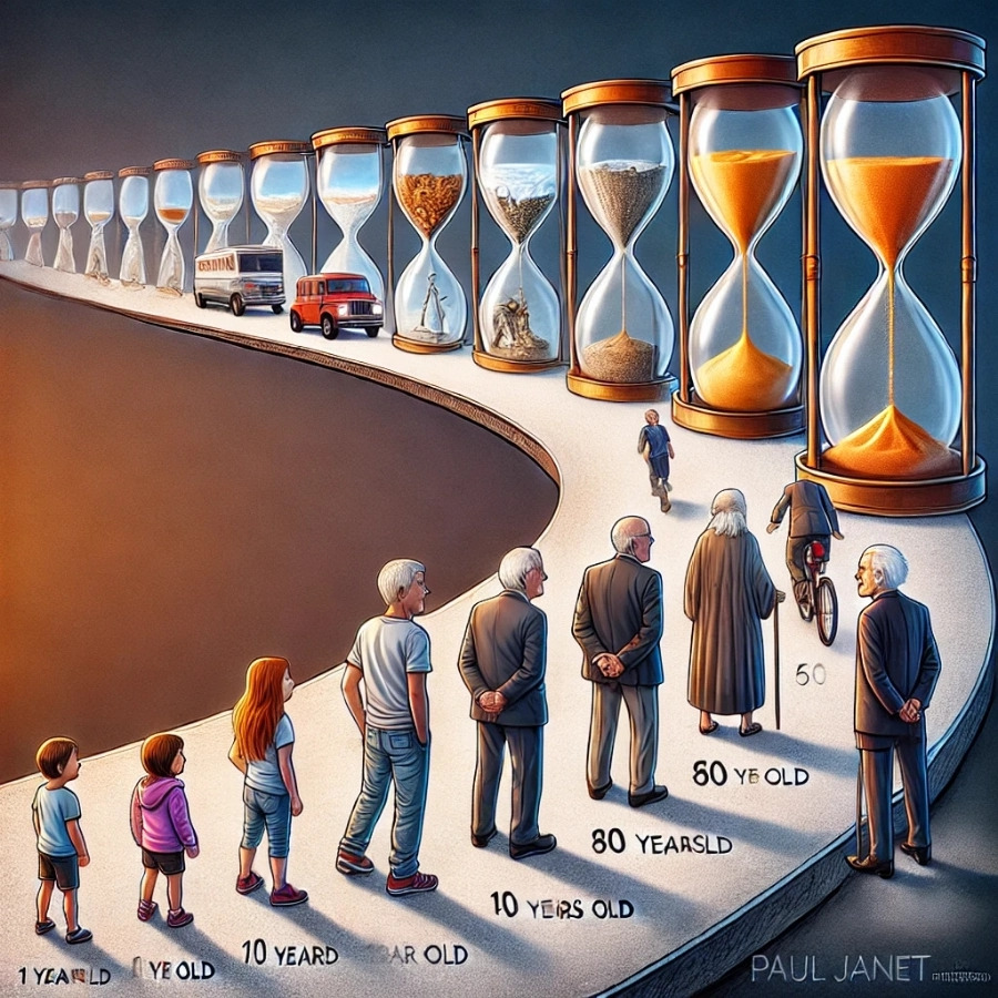 폴 자네의 법칙은 나이에 따라 시간이 상대적으로 다르게 느껴진다는 개념을 기반으로 한다.