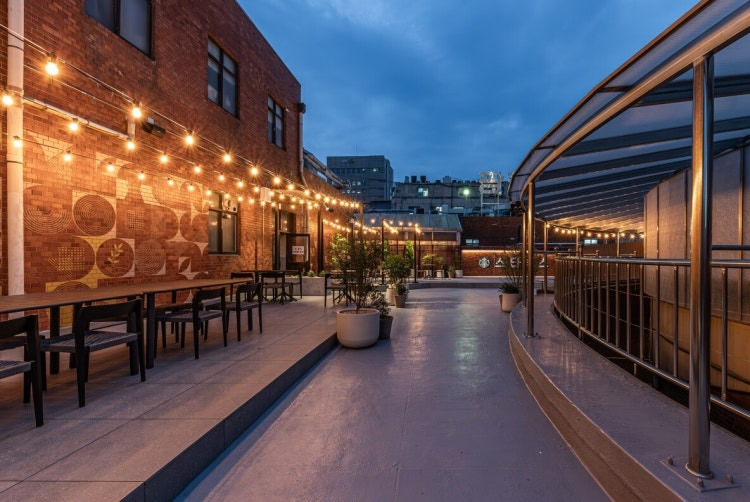 루프탑을 포함한 2개 층에는 250여 석의 좌석이 마련되었고, 전통시장 분위기를 그대로 담아내려는 노력이 곳곳에서 보인다.